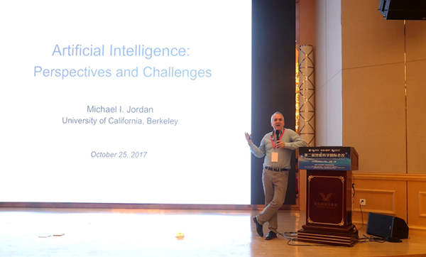 10月25日,在由上海海事大学、上海市思维科学研究会承办的第二届智能科学国际会议上,现为美国科学院、美国工程院、美国艺术与科学院三院院士、加州大学伯克利分校教授的迈克尔·乔丹(Michael I. Jordan)做了题为《人工智能:前景和挑战》的报告。